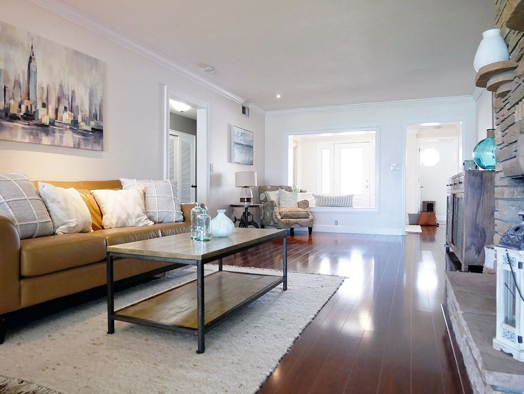 The Madeira Beach waterfront property sold in less than a month after we transformed the interior with modern furniture and coastal decor, creating an inviting beach vacation home feel.